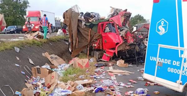 Os caminhões, que transportavam cargas de frutas e café, colidiram frontalmente. Imagens divulgadas em redes sociais mostram que um deles veículos ficou completamente destruído.