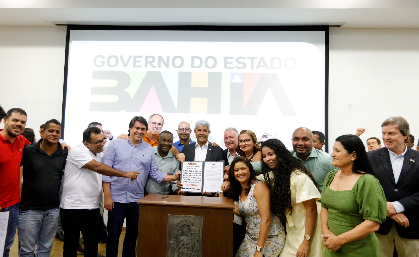 Também foi assinado convênio com o Consórcio Intermunicipal do Mosaico das Apas do Baixo Sul (CIAPRA) para a requalificação e ampliação da orla de Taperoá, que receberá investimento de R$ 3,9 milhões do Governo do Estado. Para a prefeita Kitty Guimarães, o projeto representa um marco para o município. “É um convênio que vai transformar a realidade do nosso município, que é pequeno. Uma obra como a orla muda o turismo e melhora a economia da nossa cidade”, afirmou.