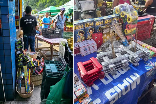 Uma operação da Polícia Civil apreendeu 2,5 milhões de fogos de artifício clandestinos na Bahia. Segundo a corporação, o montante é o maior já registrado no estado em 10 anos, desde que a fiscalização começou. As informações são do g1 BA e TV Bahia.