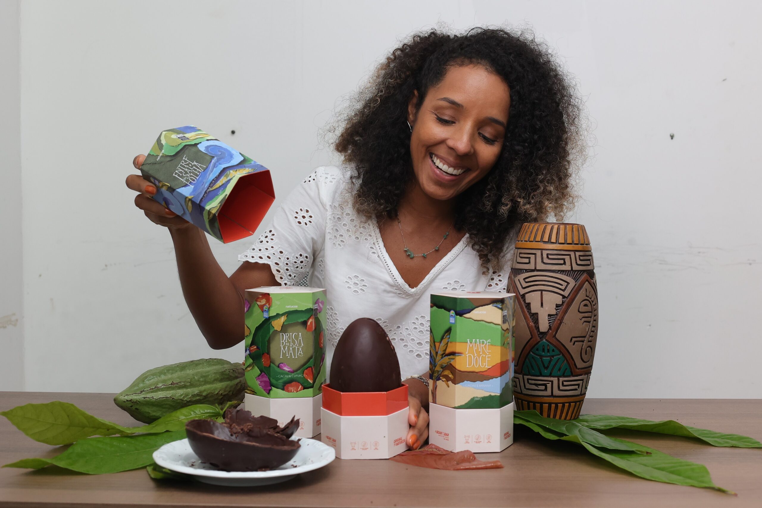 Na Natucoa, marca vegana e sem glúten, a campanha deste ano chega com novidades e volume recorde. A produção dobrou em relação ao ano passado, e a cooperativa ampliou a variedade de ovos de Páscoa. Entre os lançamentos da linha principal estão os ovos de chocolate 56% recheados com cupuaçu, 65% com caramelo e flor de sal e 70% com banana, além de sabores já consagrados, como licuri, pistache e o Duo, que combina chocolate branco e preto. As frutas que compõem o recheio também são cultivadas por agricultores e agricultoras da região.